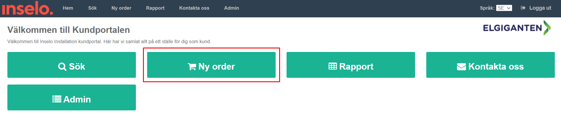 2. Klicka på "Ny order"