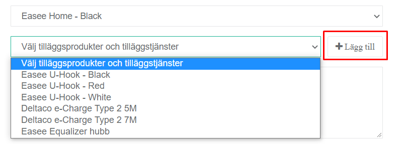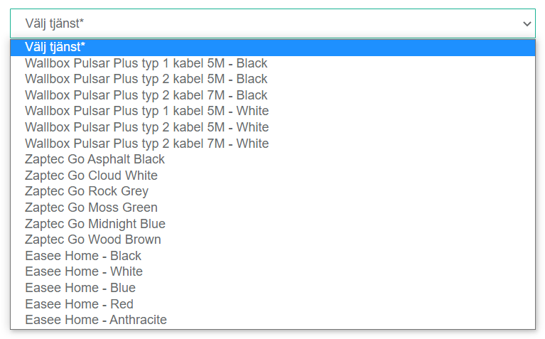 6. Välj vilken Elbilsladdare kunden önskar